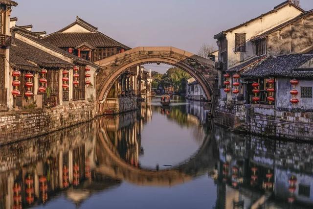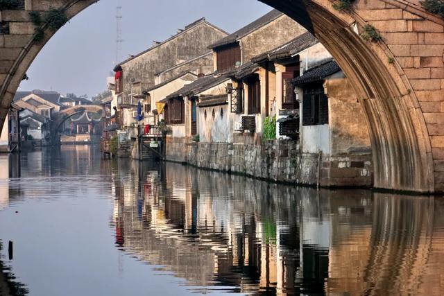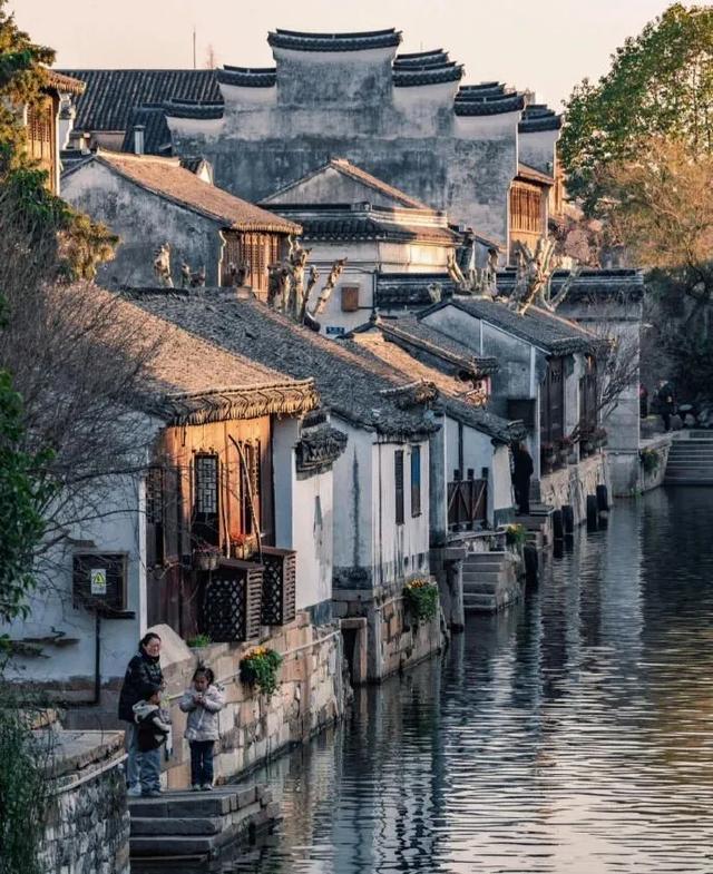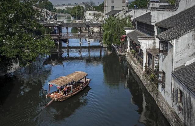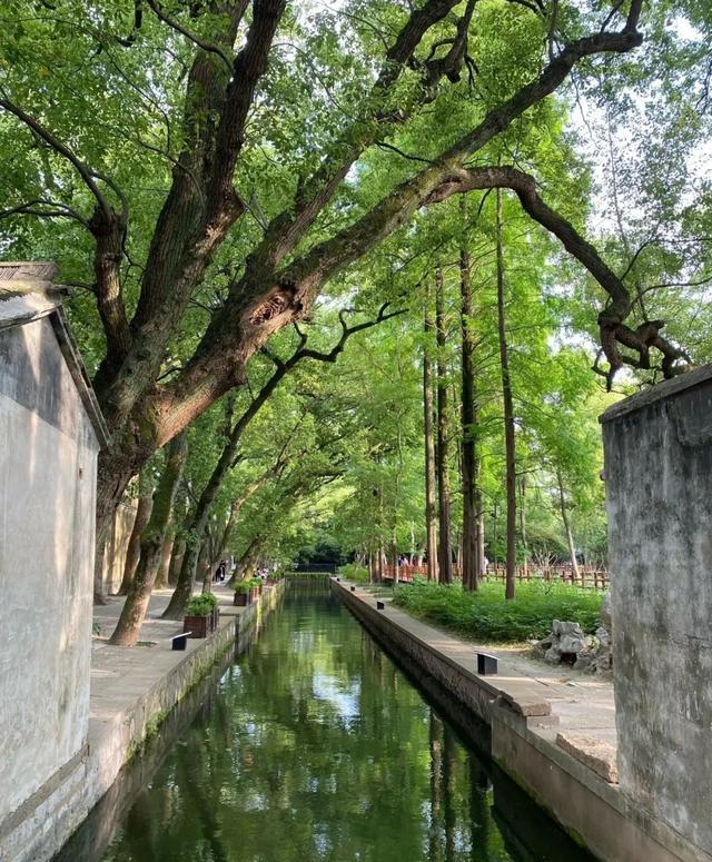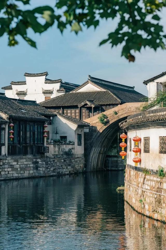 ✅长发桥:桥搭配岸边的绿树和古老的房屋店铺,树荫斑驳打在墙上,春天碧绿的树叶随风摇曳,一派岁月静好的样子。